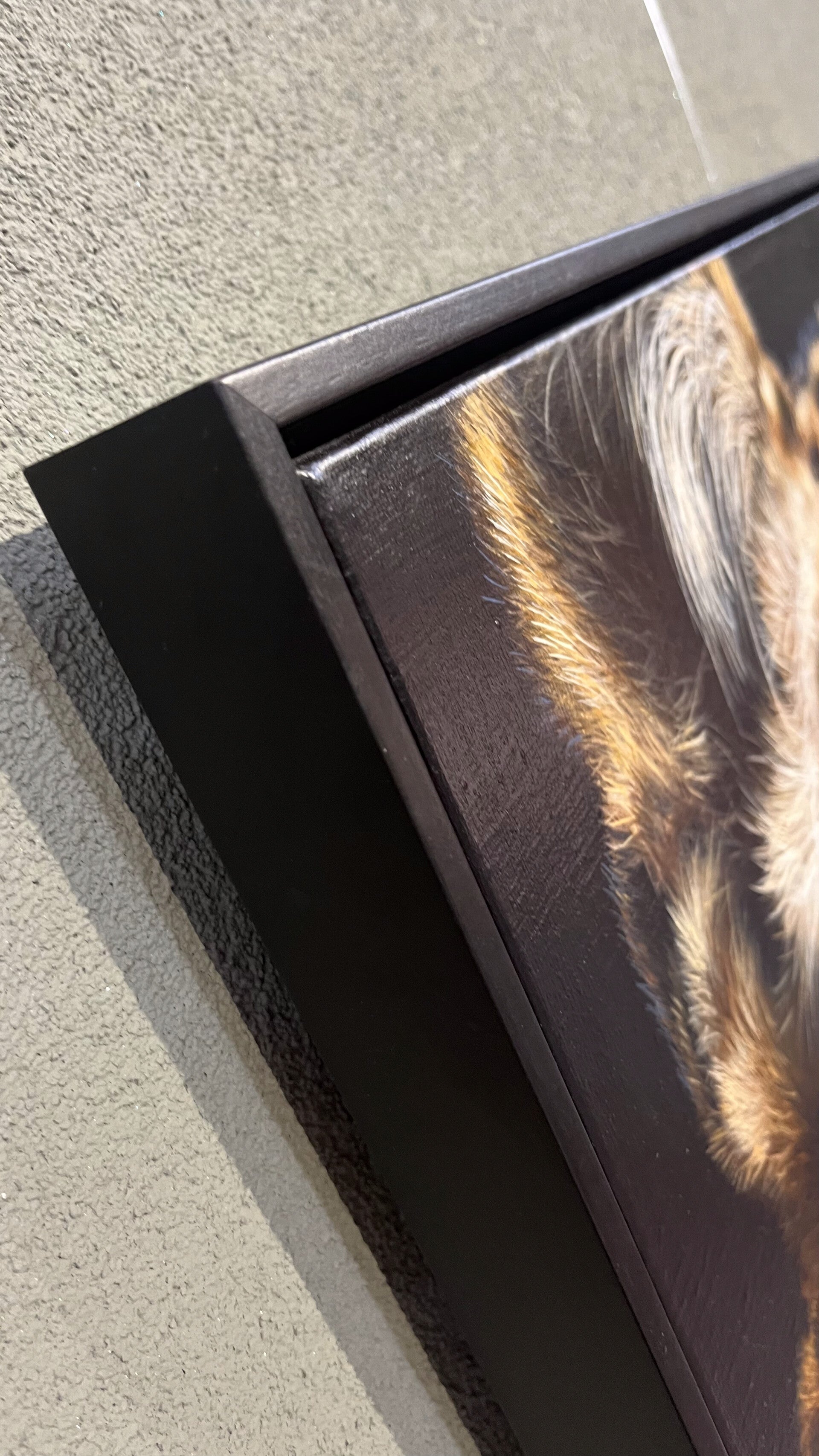 Ingelijst in een stijlvolle, met de hand geschilderde zwarte baklijst is Charlie helemaal klaar om een vleugje wilde elegantie aan je interieur toe te voegen. Of je nu een liefhebber bent van wildlife, kunst of gewoon een zwak hebt voor een luipaard met een intense blik—dit werk brengt een krachtig en tijdloos statement in huis.