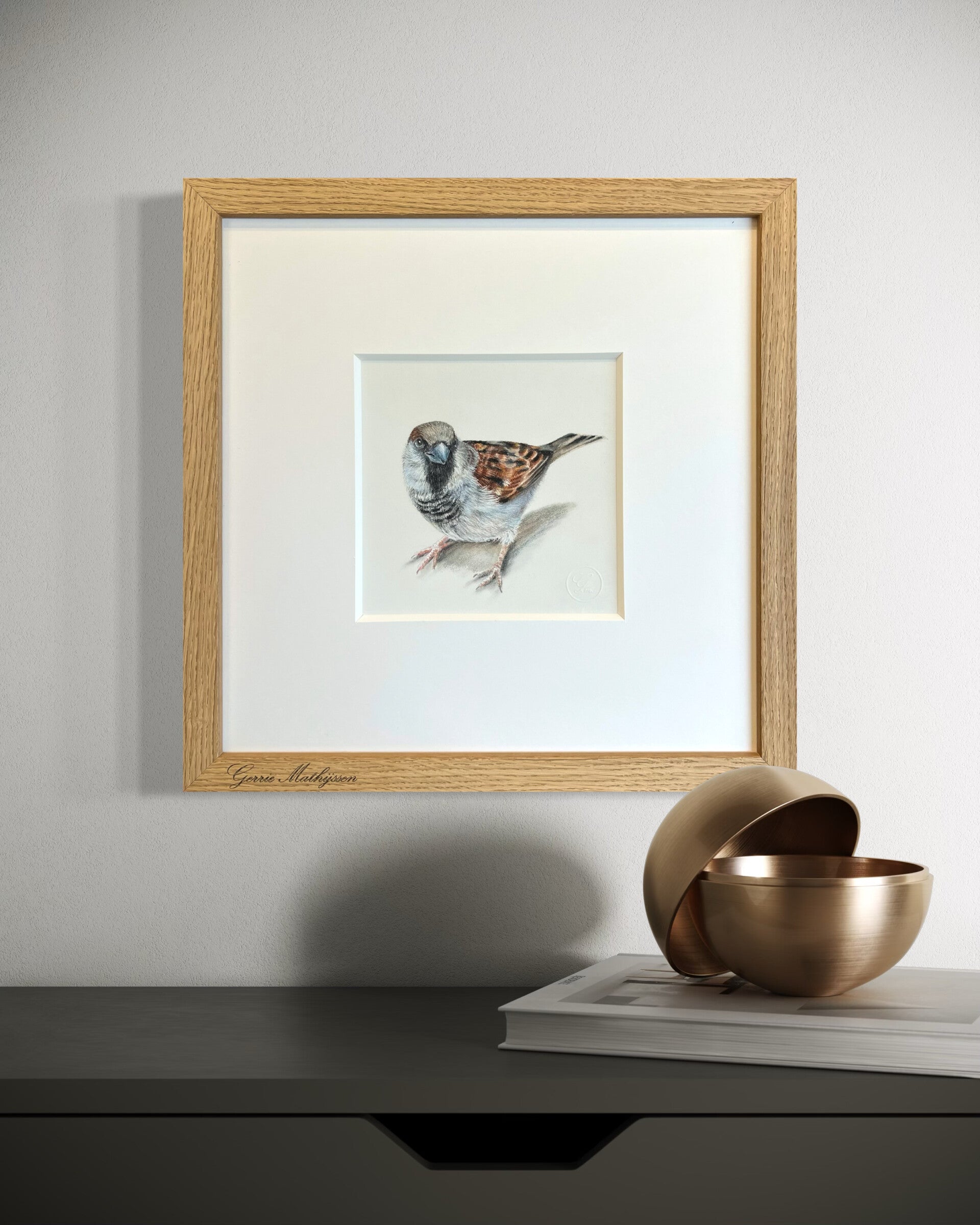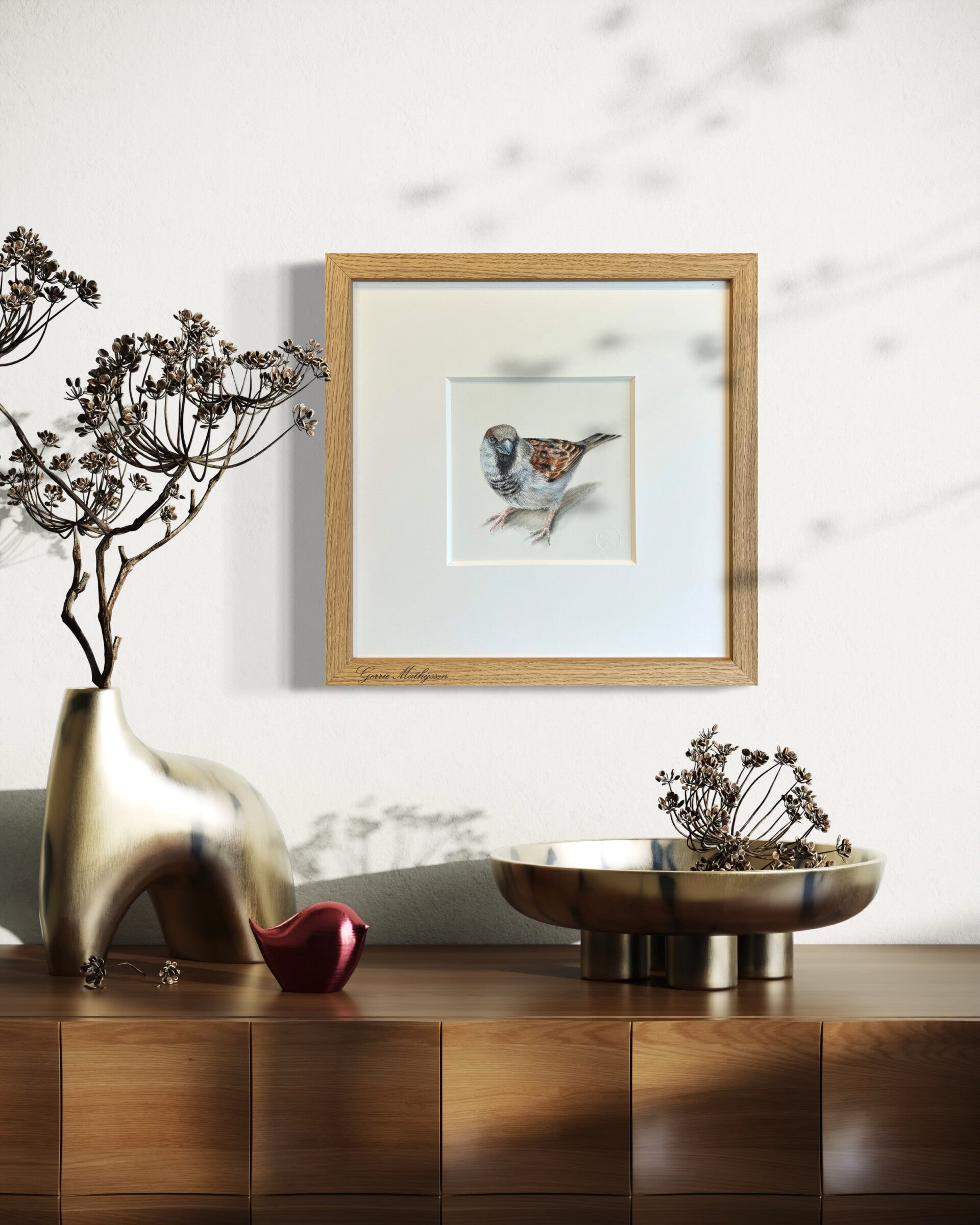 Dit vogeltje is al uitgevlogen, maar wil je graag een tuinvogeltje uit deze serie potloodtekeningen? Je kunt nu ook zo'n kunstwerkje in jouw favoriete tuinvogeltje bestellen.