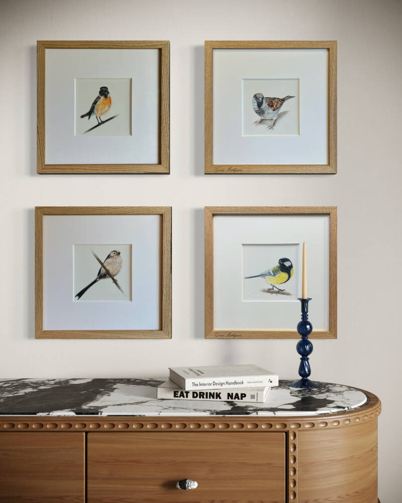 De kleine, grappige vogeltjes die je dagelijks in je tuin kunt tegen komen, vast gelegd op papier.